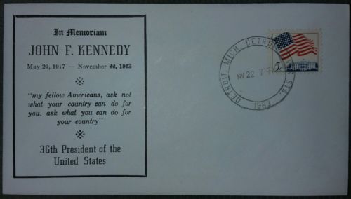 Title (ebay affiliate link): RARE JOHN F KENNEDY DETROIT MI FDC POSTMARKED DAY OF ASSASSINATION 11/22/1963