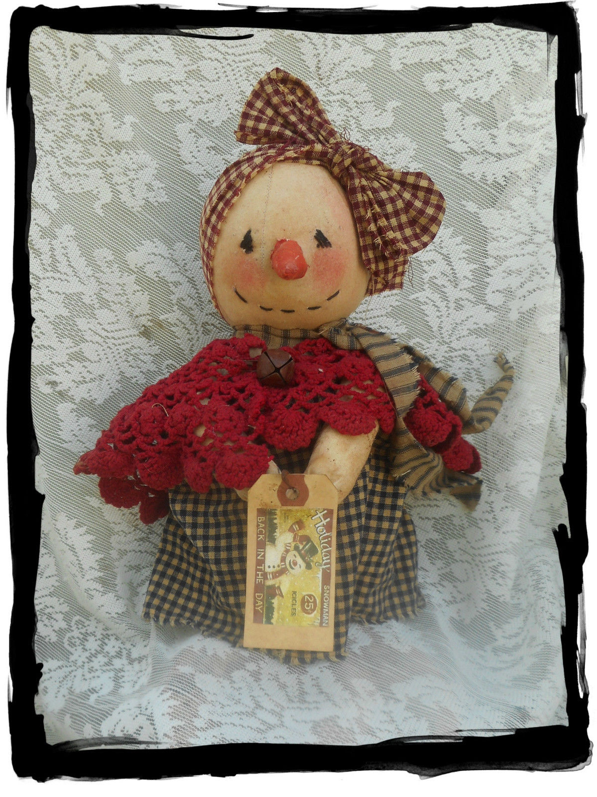 Title (ebay affiliate link): Primitive Handmade` *Snowman* Snow Lady Doll* Round Head*Long Nose*Stands alone*