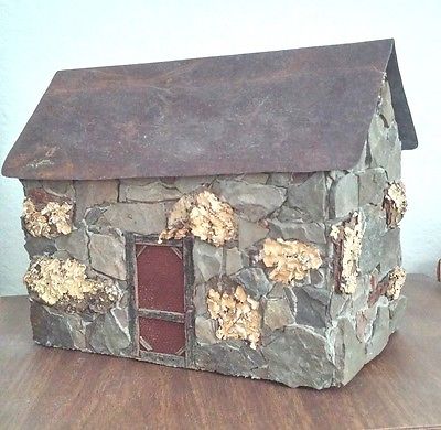 Title (ebay affiliate link): Handmade Primitive Pat Broyles Folk-Art Stone Cottage with Tin Roof - signed