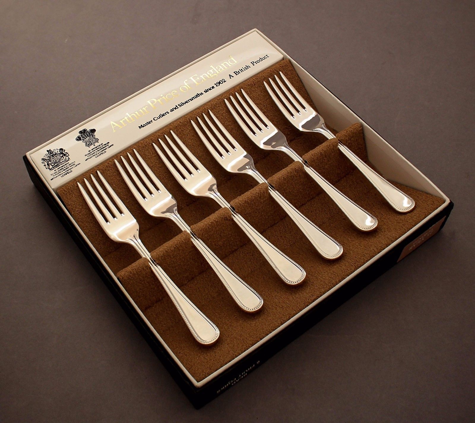 Title (ebay affiliate link): Vintage Arthur Price silver plate bead fruit/dessert forks bead pattern