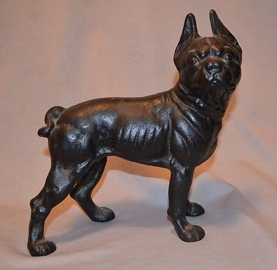 VINTAGE BOSTON TERRIER BULL DOG CAST IRON DOOR STOP