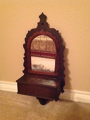 Antique Wood Shaving Mirror Wall Hung and Single Drawer