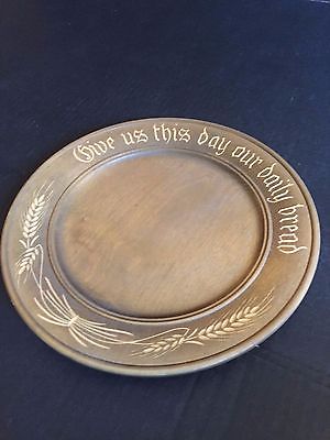 Antique carved wood plate engraved - Give Us This Day Our Daily Bread