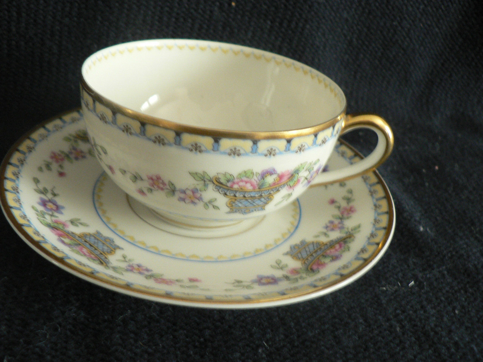 a B & Co LIMOGES FRANCE TEA CUP AND SAUCER BASKETS OF FLOWERS FLEURETTE N