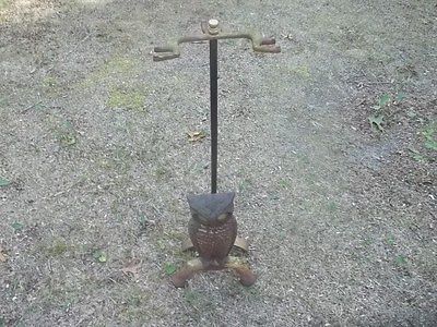 Vtg Rusty Cast Iron Owl Fireplace Tool Holder Stand Holds Fire Place Tools