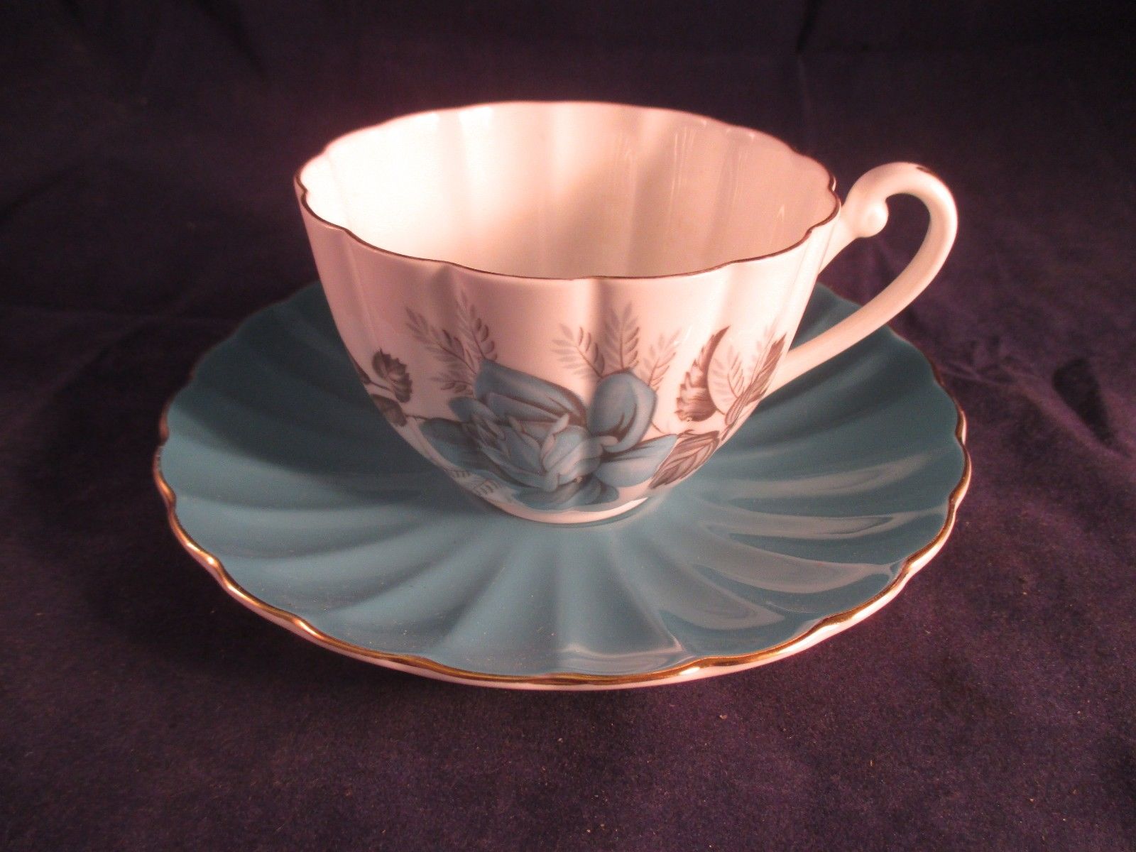 Title (ebay affiliate link): SHELLEY TEA CUP & SAUCER SET FINE BONE CHINA ENGLAND 0569 BLUE SCALLOPED PATTERN