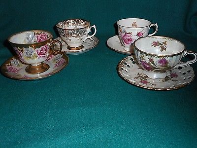 LOT OF 4 VINTAGE TEACUPS AND SAUCERS FROM ENGLAND AND JAPAN