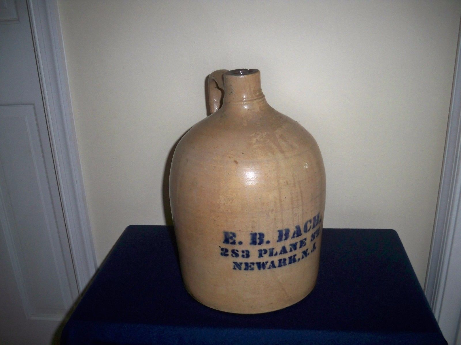 Title (ebay affiliate link): Antique 19thC Stoneware E.B. Bach Newark New Jersey Advertising Merchant Jug 2gl