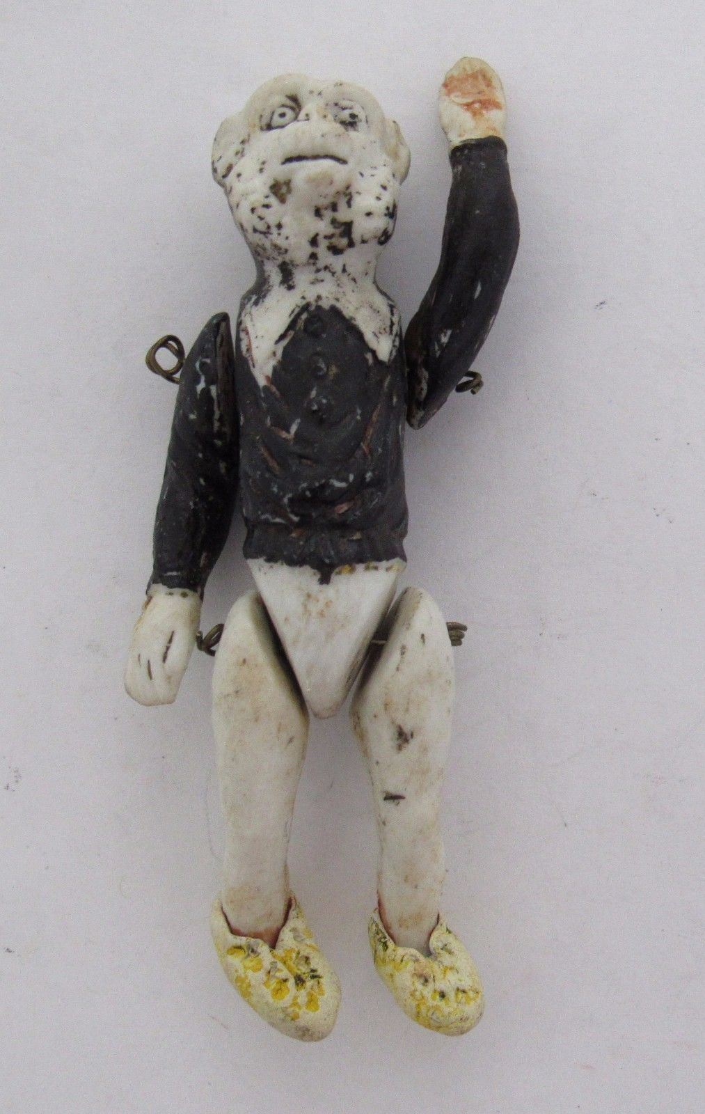 Title (ebay affiliate link): ANTIQUE BISQUE MONKEY IN BUTLER OUTFIT W MOVEABLE ARMS AND LEGS AND CUTE SHOES!!