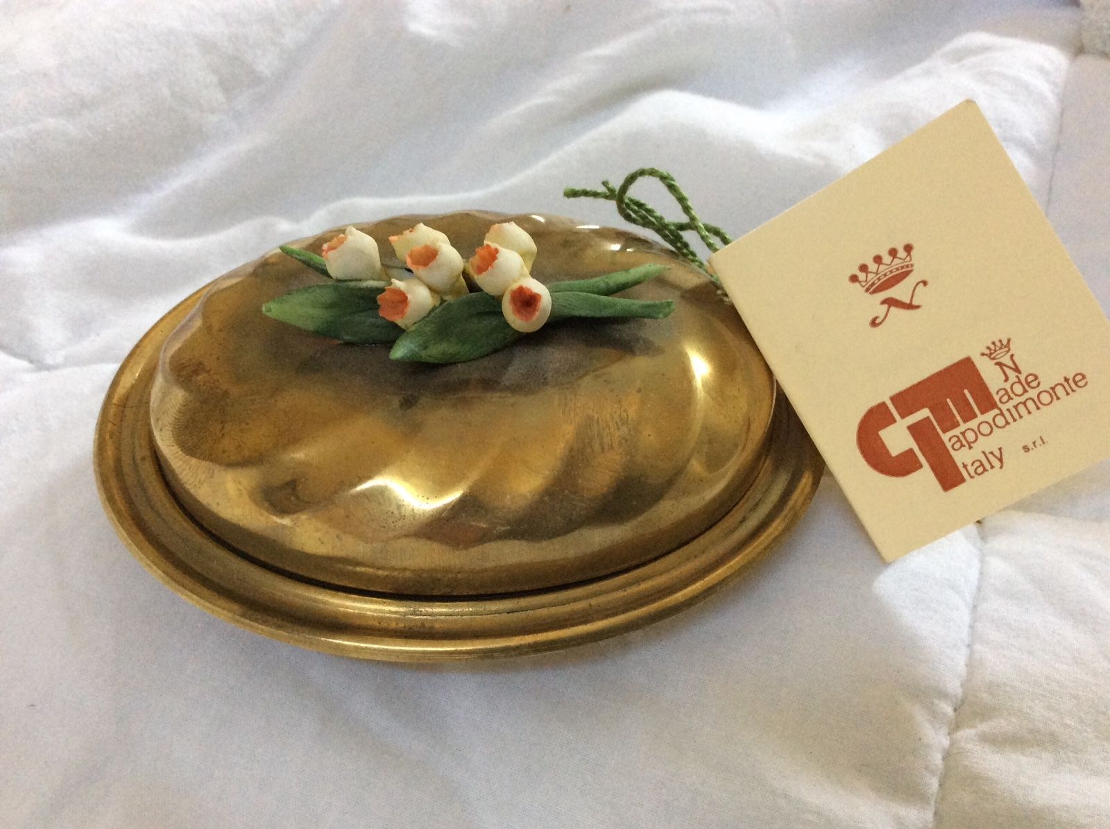 Title (ebay affiliate link): Vintage Capodimonte Flower Trinket Box w/ Lid Made in Italy