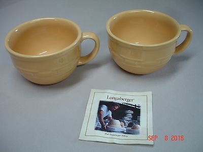 2 Longaberger Pottery Woven Cappuccino Mugs/Cups Butternut