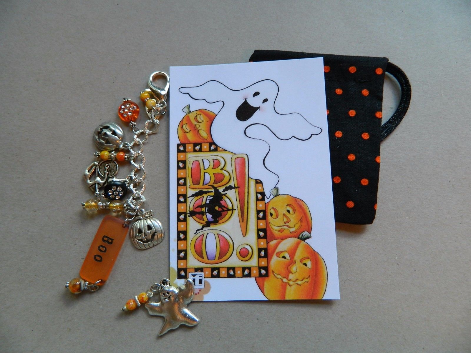 M Engelbreit Halloween artwork w/ scissor fob, needle minder bag Boo ghost witch