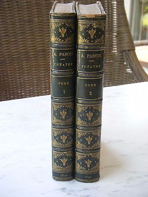 Alexandre Parodi Theatre 1894, Antique Leather Books, Green Leather, Set of 2