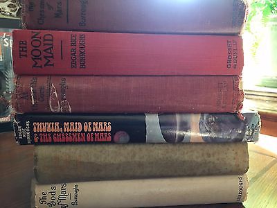 E R Burroughs lot of Mars Series Antique Books- Frazetta, St John - 6 books
