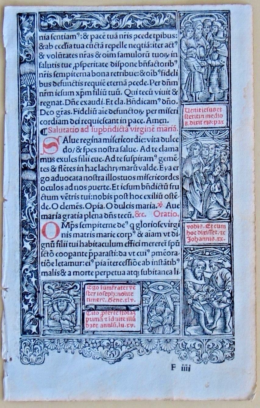 Printed Medieval Book of Hours Leaf on Paper,Deco.Border with charming Scenes