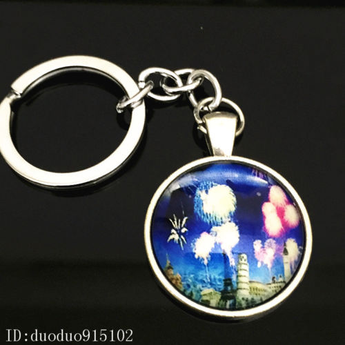Title (ebay affiliate link): Vintage Christmas Keychain Cabochon Tibetan silver Glass Metal Key Ring Y11