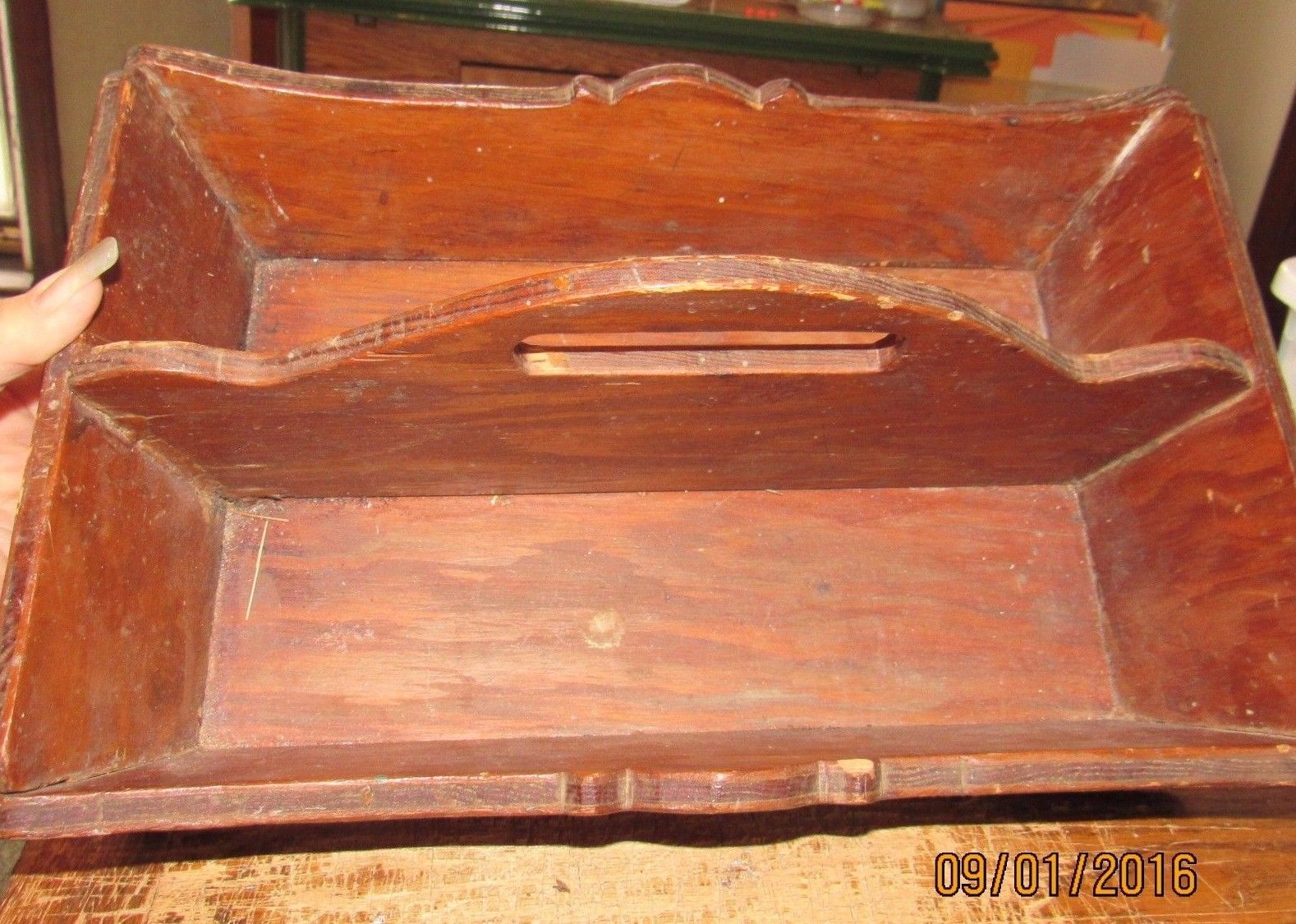 Title (ebay affiliate link): Vintage wood handled divided kitchen utility caddy tote box