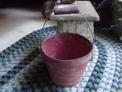 Sweet Small Primitive Vintage Bent Wood Berry Bucket Shabby Red Wood Bale Handle