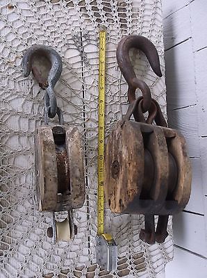 Title (ebay affiliate link): Vintage Two Wooden Cast Iron One Single Pulley & One Double Pulley -Boat Work