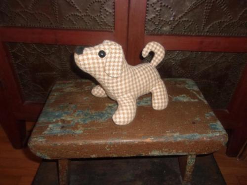 Title (ebay affiliate link): Primitive Homespun Check Brown & Cream Puppy Dog Darling