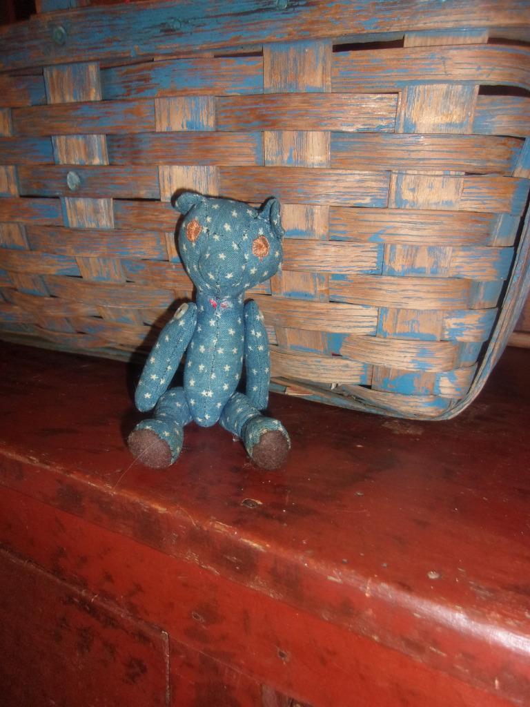 Title (ebay affiliate link): Primitive Homespun Early Blue Calico Star Fabric Bear 4 1/2" so sweet AAFA