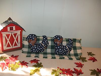 Handmade Primitive Fabric Bowl Fillers Blue Hens Rooster Set of 2