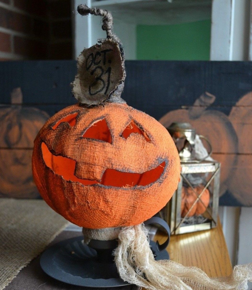 Title (ebay affiliate link): PRIMITIVE Halloween Pumpkin LIGHT UP Jack O Lantern CandLe Holder Base StoneMt