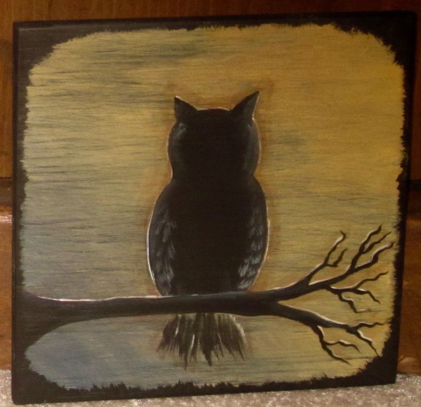 Title (ebay affiliate link): *~*PRIMITIVE*~* HP FOLK ART PRIM OWL SILHOUETTE *~* HALLOWEEN *~* BOARD