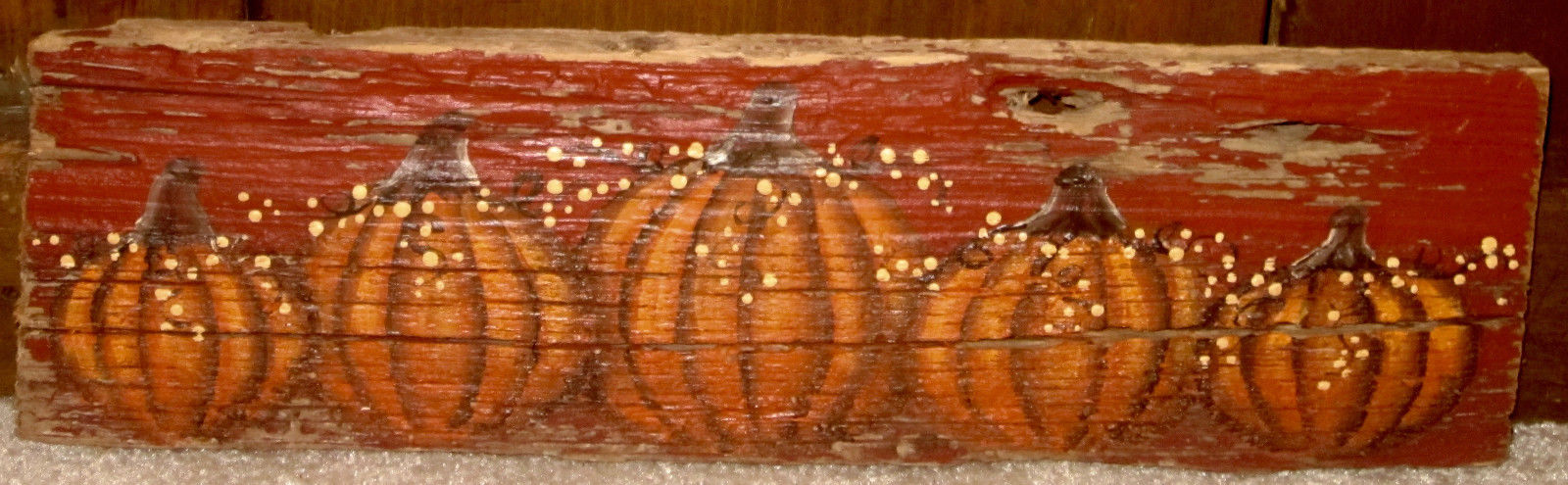 Title (ebay affiliate link): *~*PRIMITIVE*~* HP FOLK ART PRIM PUMPKINS *~* BERRIES *~* OLD RED BARN WOOD