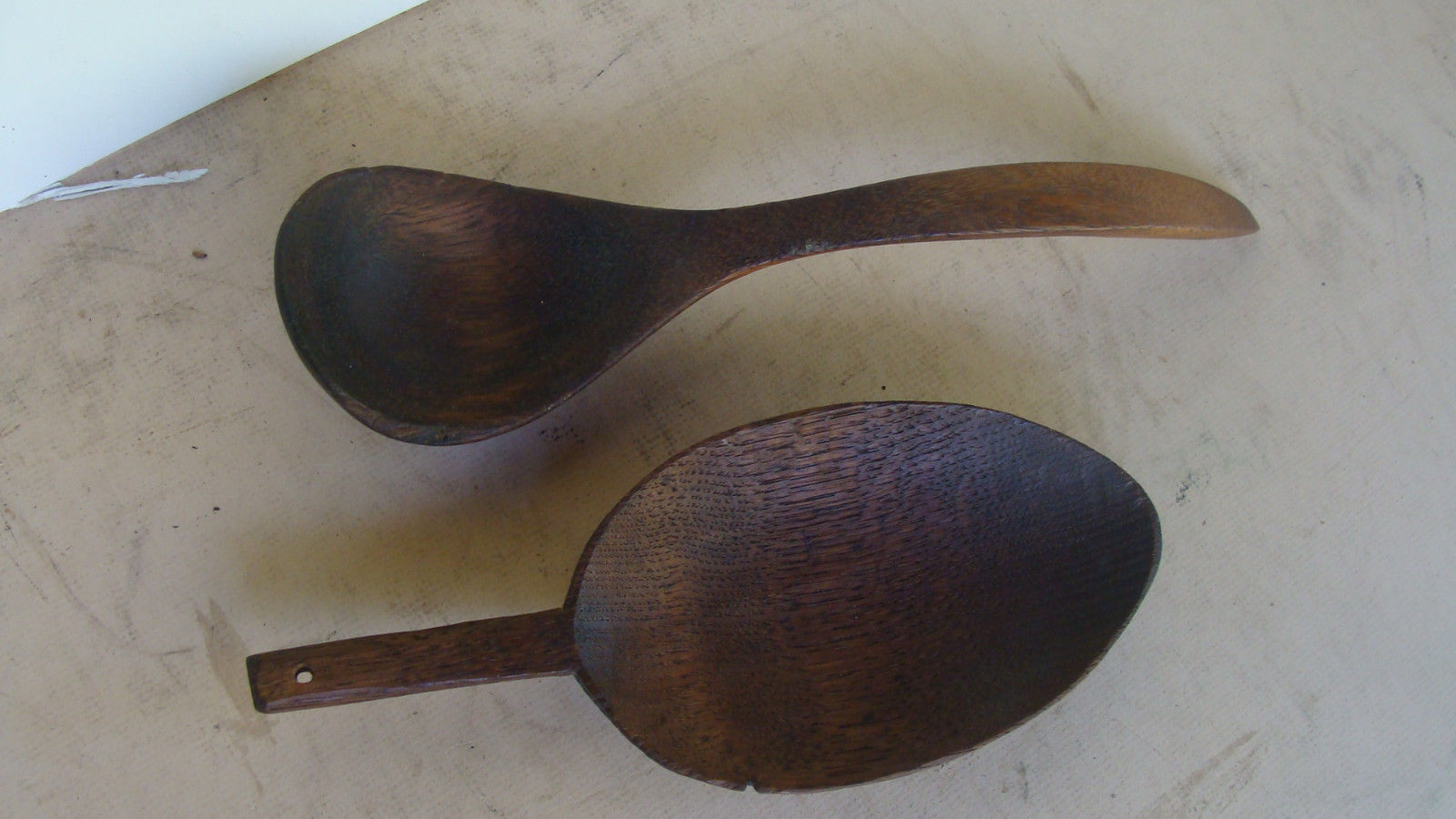 2 hand carved 19th C large spoons or ladles (chestnut) *