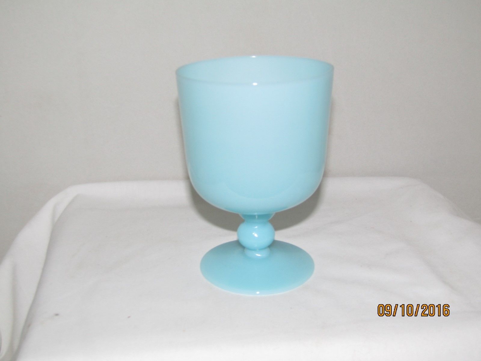 Vintage PV Portieux Vallerysthal French Blue Opaline Milk Glass Stemware Goblet