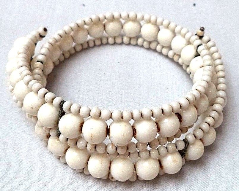 Title (ebay affiliate link): STUNNING VINTAGE ESTATE MILK GLASS BEADED WRAP BRACELET!!! 6744T
