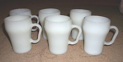 Title (ebay affiliate link): Lot 6 White Milk Glass Fire King Soda Cola Mugs Cups Anchor Hocking