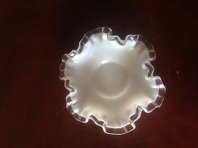 Fenton Art Glass, Candy/Nut Dish, Milkglass White, Silver Crest Line 6"
