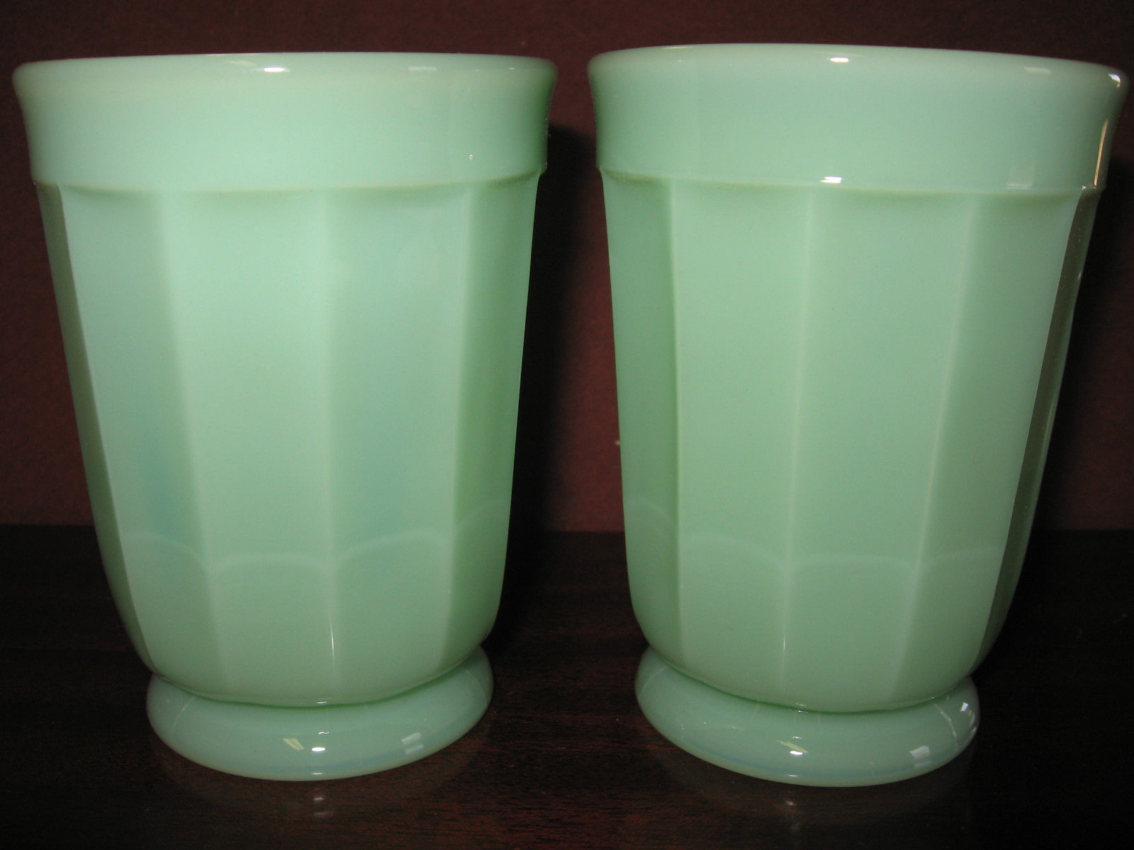pair of Jadeite green milk glass panel pattern tumblers cups goblets jadite jade