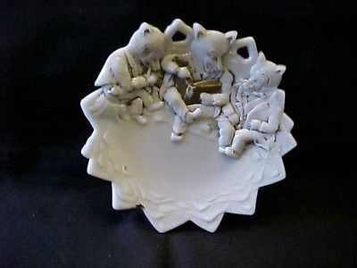 Old 3 Bear Milk Glass Plate / Westmoreland / Gilt