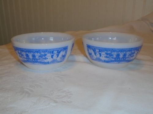 Title (ebay affiliate link): 2 Retro Vtg Federal Milk Glass Cereal Soup Bowls Blue Willow Oriental Design Exc