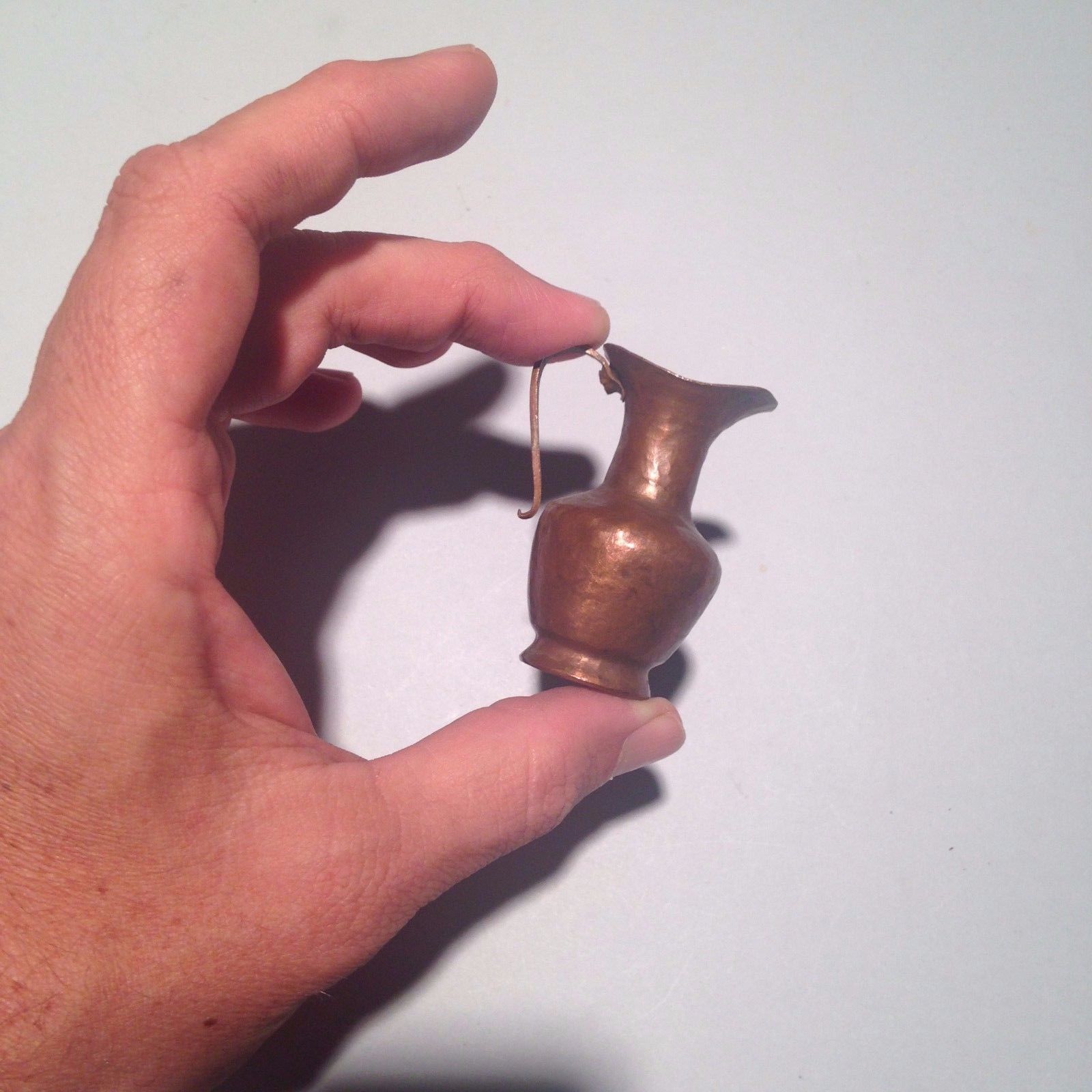Title (ebay affiliate link): Antique Miniature Copper Pitcher hand raised forged doll house