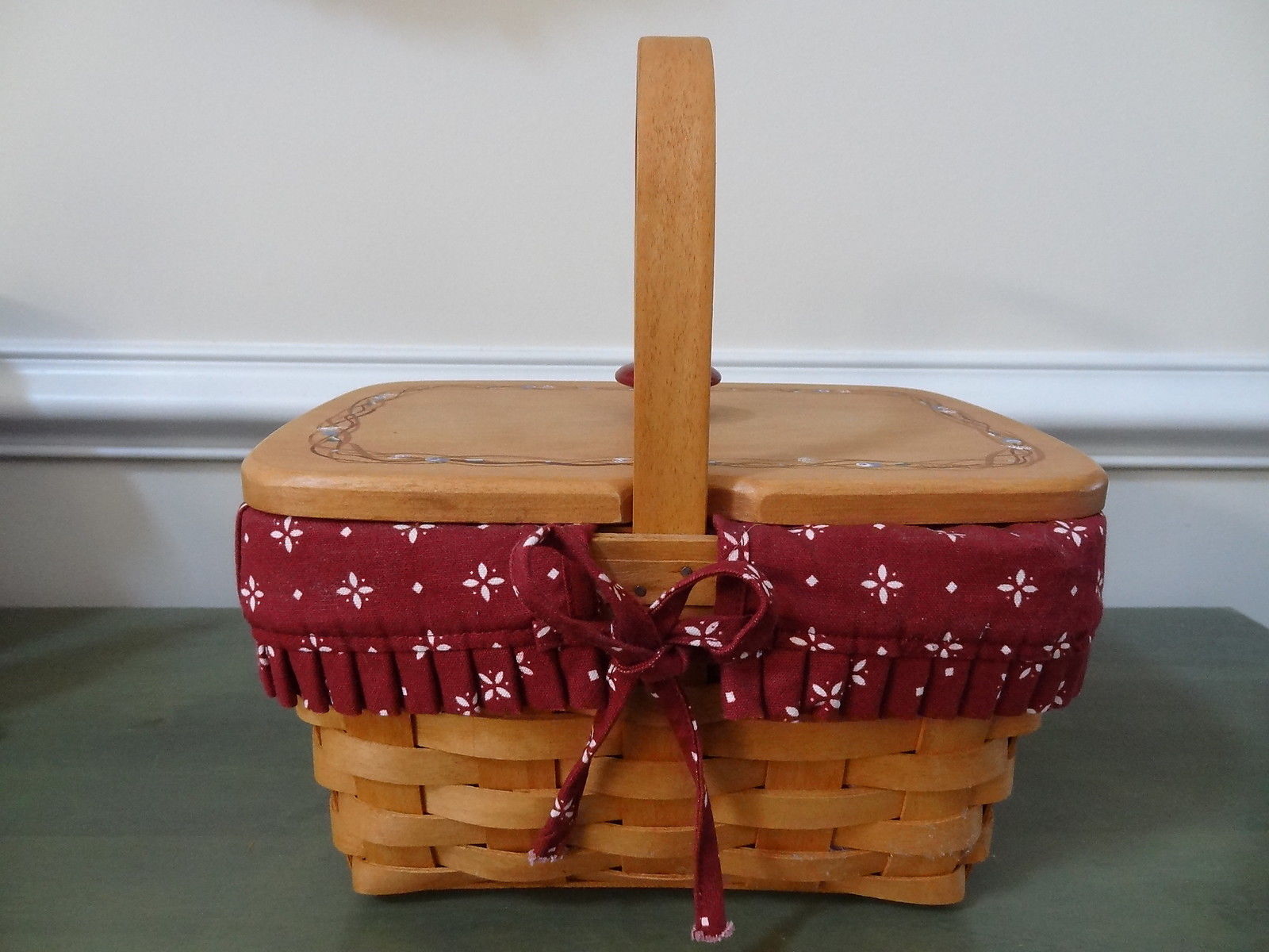 Title (ebay affiliate link): RECTANGULAR LONGABERGER BASKET W/ FABRIC & PLASTIC LINERS & WOOD H-P LID