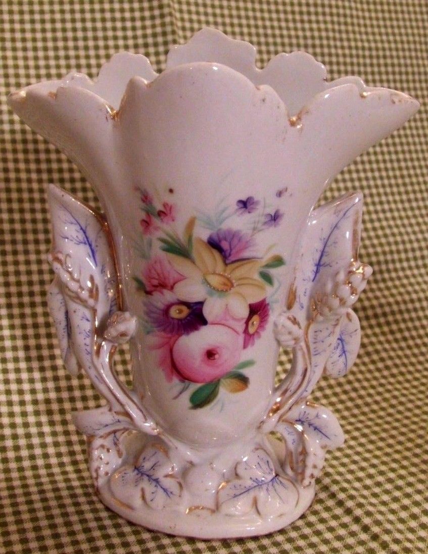 Title (ebay affiliate link): Vintage Fan Vase Leaf Wheat Handles Hand Painted Floral Rose Design Numbered