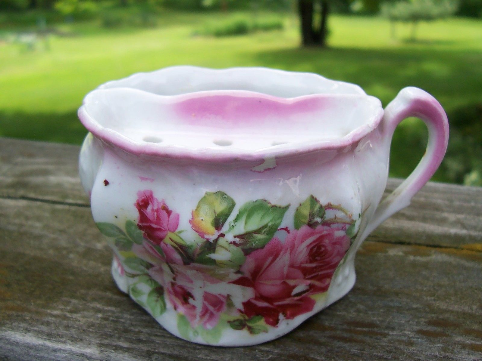 Antique Bavaria Porcelain Teacup w/Strainer - Pink Roses