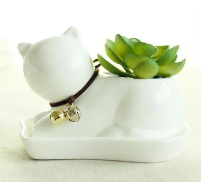 Title (ebay affiliate link): White Ceramic Succulent Plant Flower Pot with Tray Home Greenery Container - Cat
