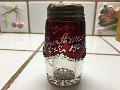 1901 Pan American Expo ruby glass salt or pepper shaker