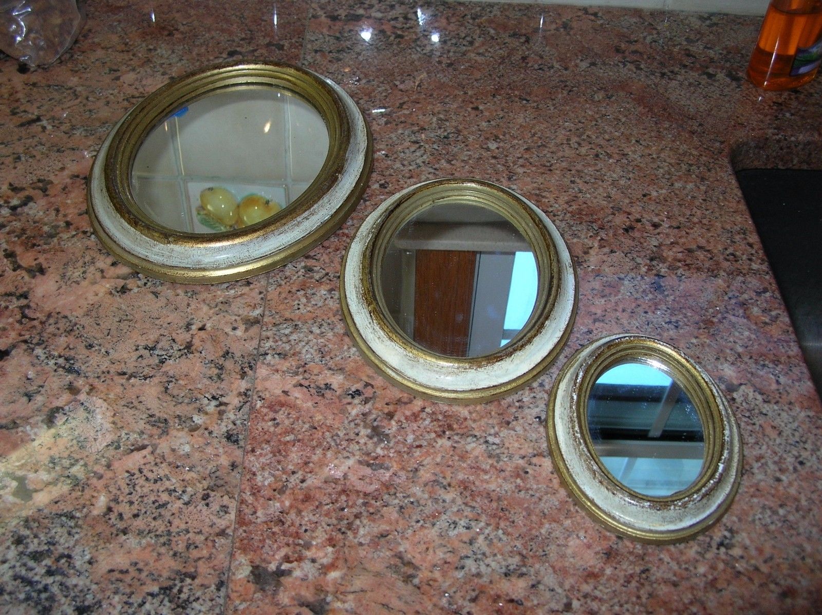 Title (ebay affiliate link): Vintage Florentine Tole Graduated Set of 3 Wall Table Mirrors Gold, White Italy