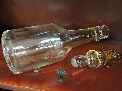Title (ebay affiliate link): CLEAR BLOWN GLASS DECANTER WITH PONTIL MARK & AMBER GLASS ROOSTER TOPPER