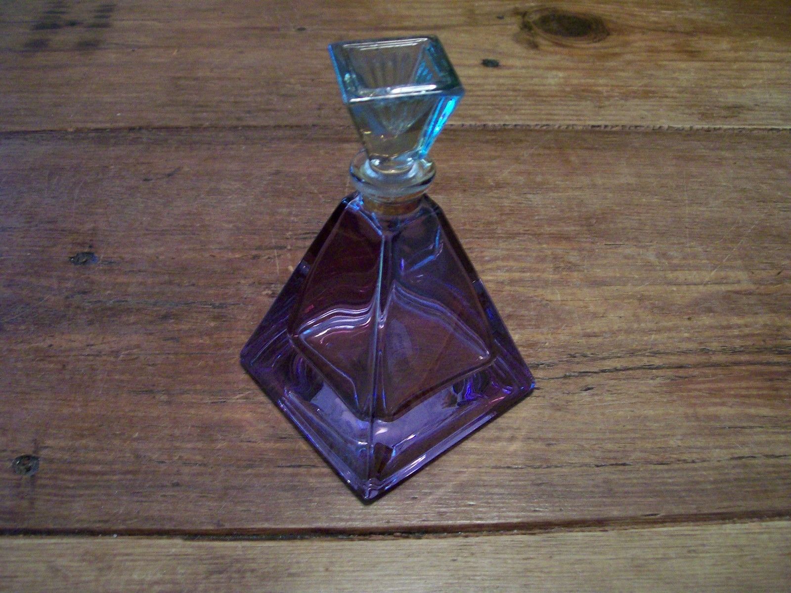 Title (ebay affiliate link): ROYAL LIMITED CRYSTAL PERFUME BOTTLE with Stopper - Pyramid- Lavender - 5-1/4"hi