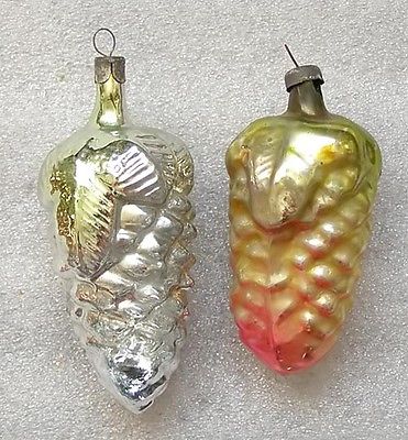 Title (ebay affiliate link): 2 Antique Vintage Silver Glass Xmas Christmas Tree Ornaments - PineCones