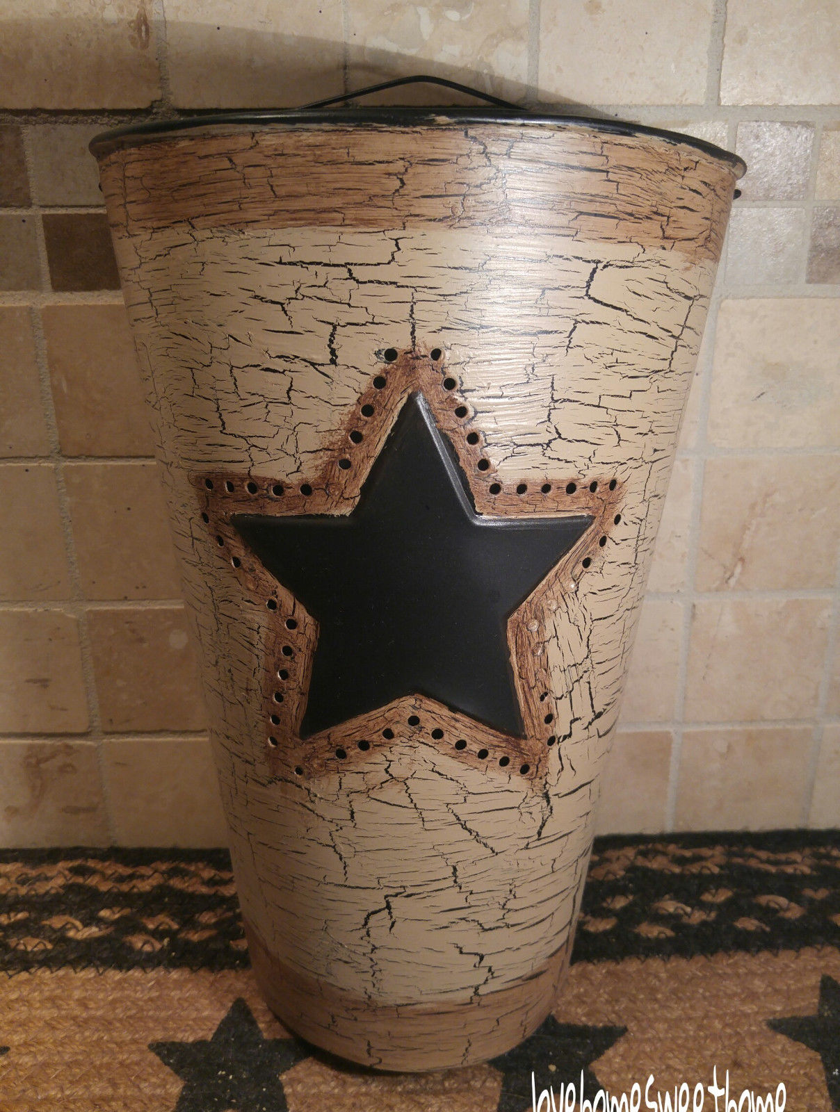 Title (ebay affiliate link): Primitive Crackle Tan & Black Stars Metal Wall Pocket ~ Country Decor