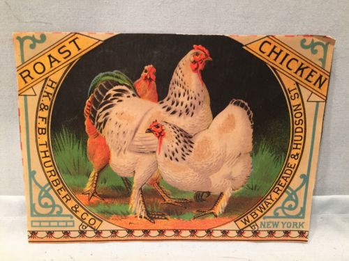 Title (ebay affiliate link): RARE Victorian Lg Trade Card Label Graphic Roast Chicken H.K. & F.B. Thurber