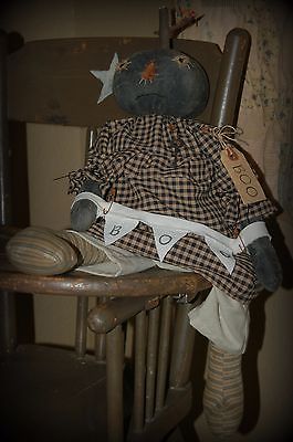 Title (ebay affiliate link): PRiMiTiVe FaLL HaRVeST HaLLoWeeN PuMPKiN HeaD DoLL WiTH HeR "BOO" BaNNeR